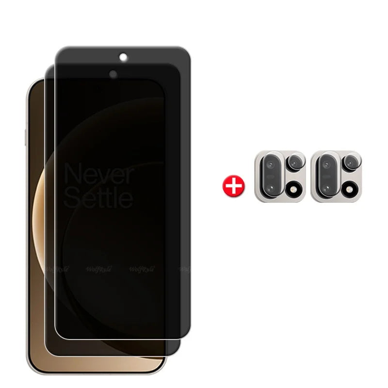 واقي شاشة زجاجي 6 في 1 لهاتف ون بلس 15، واقي شاشة زجاجي مقوى لحماية الخصوصية، مقاوم للتجسس بدرجة صلابة 9H، واقي عدسة زجاجي لهاتف ون بلس 15