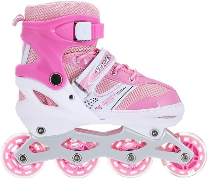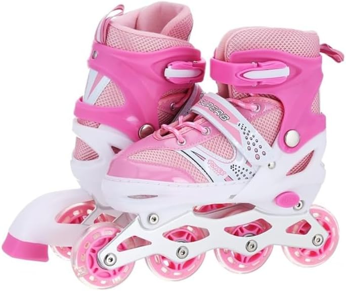 زلاجات مضمنة مريحة وقابلة للتعديل للأطفال - عجلات مضيئة LED - تصميم قابل للتهوية - زلاجات دوارة آمنة ومتينة