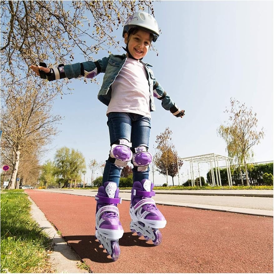 - ✔️ آمنة وموثوقة - تمنحك هذه الأحذية أداءً تزلجًا لا مثيل له، مما سيساعد طفلك على التزلج بسهولة ويسر. صُممت عجلات الجل هذه لضمان سرعة عالية وأداء آمن في آنٍ واحد. تأتي مع قفلين قابلين للتعديل لسهولة الاستخدام.