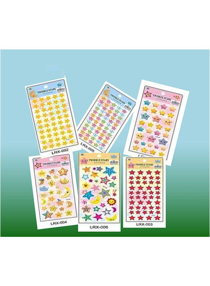 مجموعة ملصقات النجوم المتلألئة الفاخرة - 6 تصاميم ملونة فريدة للأطفال والحرف اليدوية