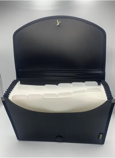 Aroma A4 Expanding File with 13 Compartments and Elastic Closure – Durable and Organized Document Holder (Black)